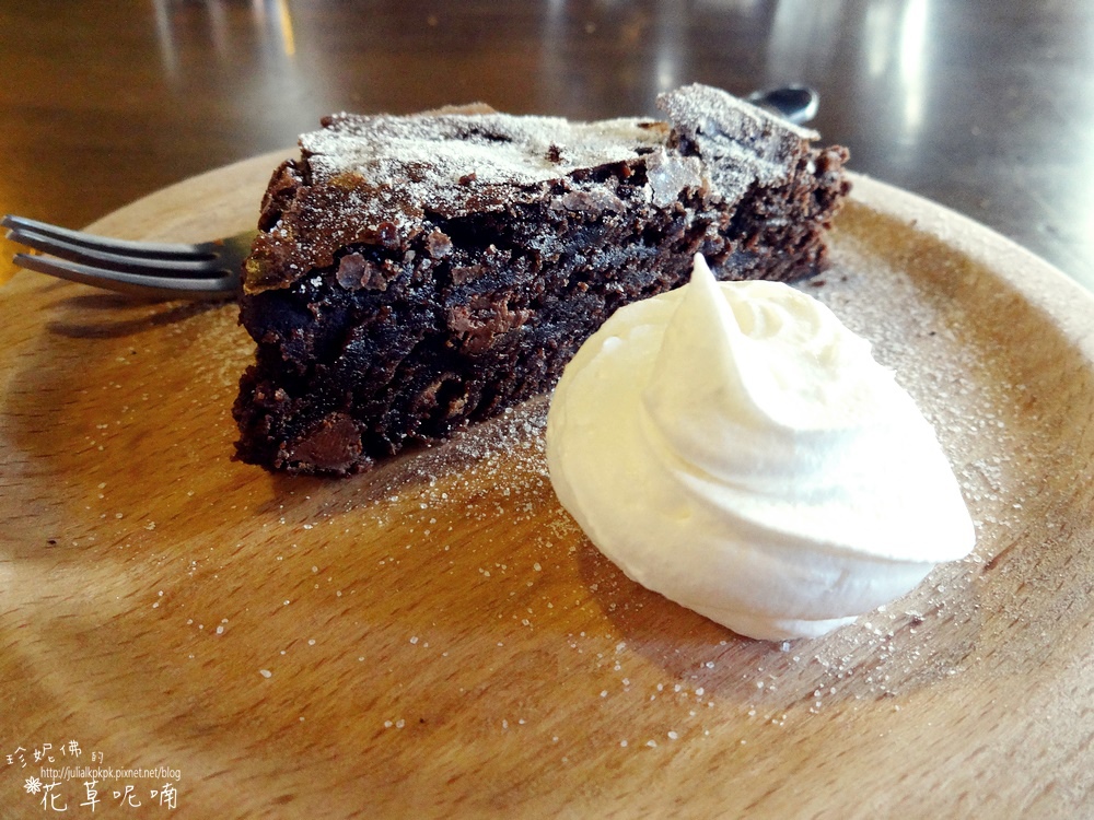 吃完主餐真的太飽,布朗尼吃起來只有甜膩的感覺,只吃了兩三口 ><