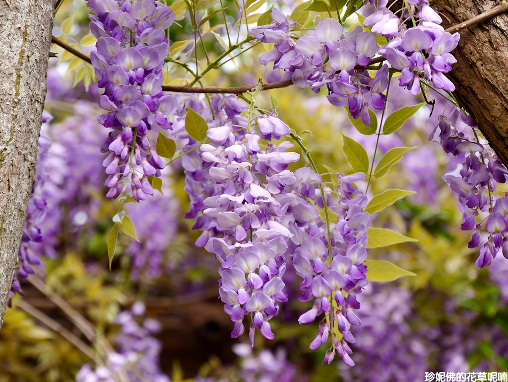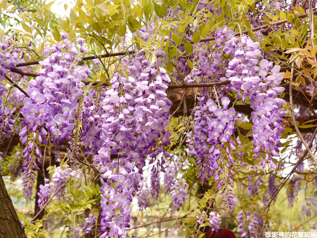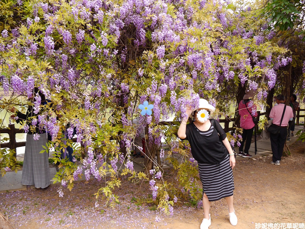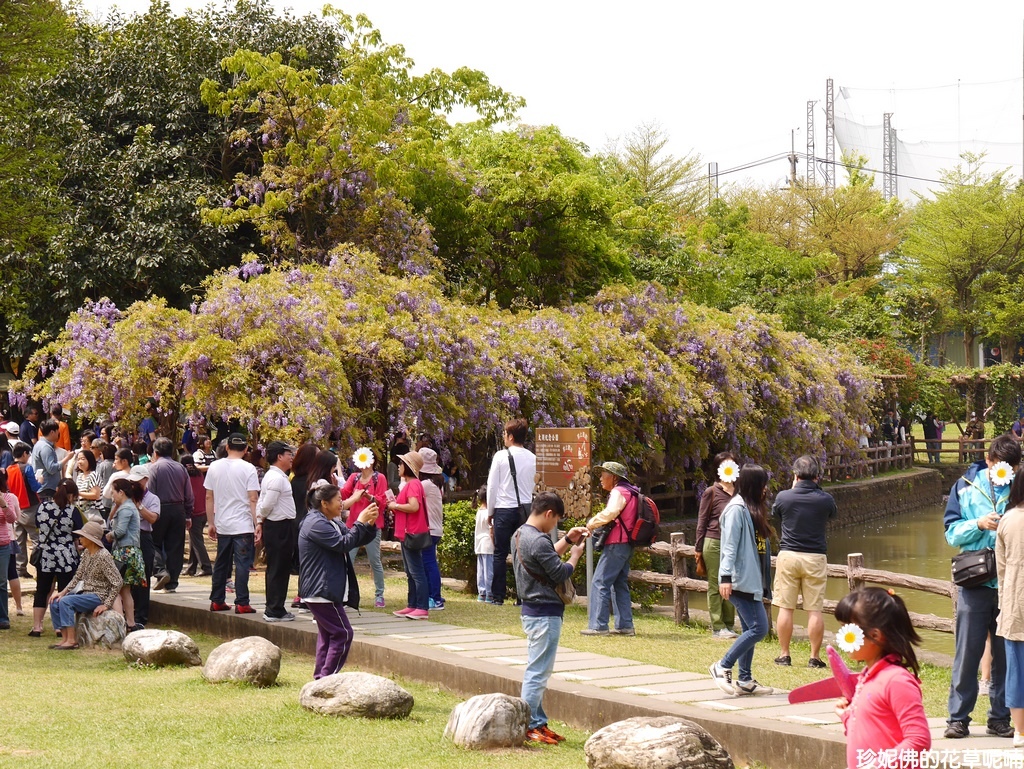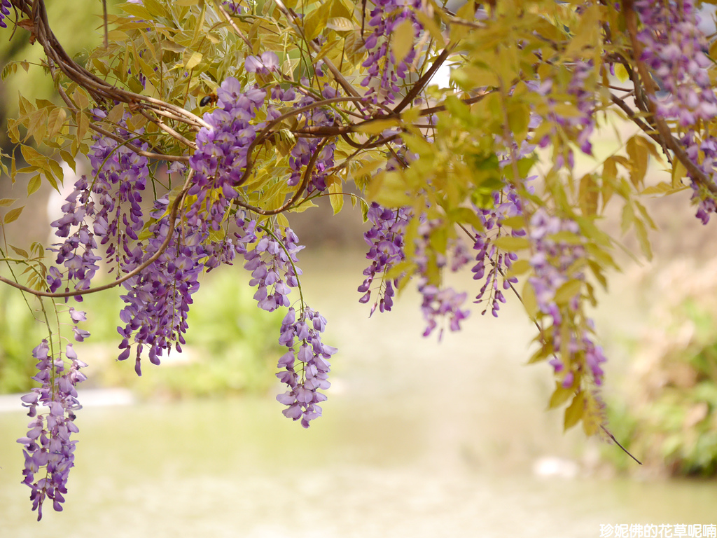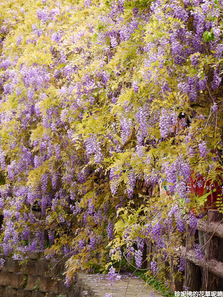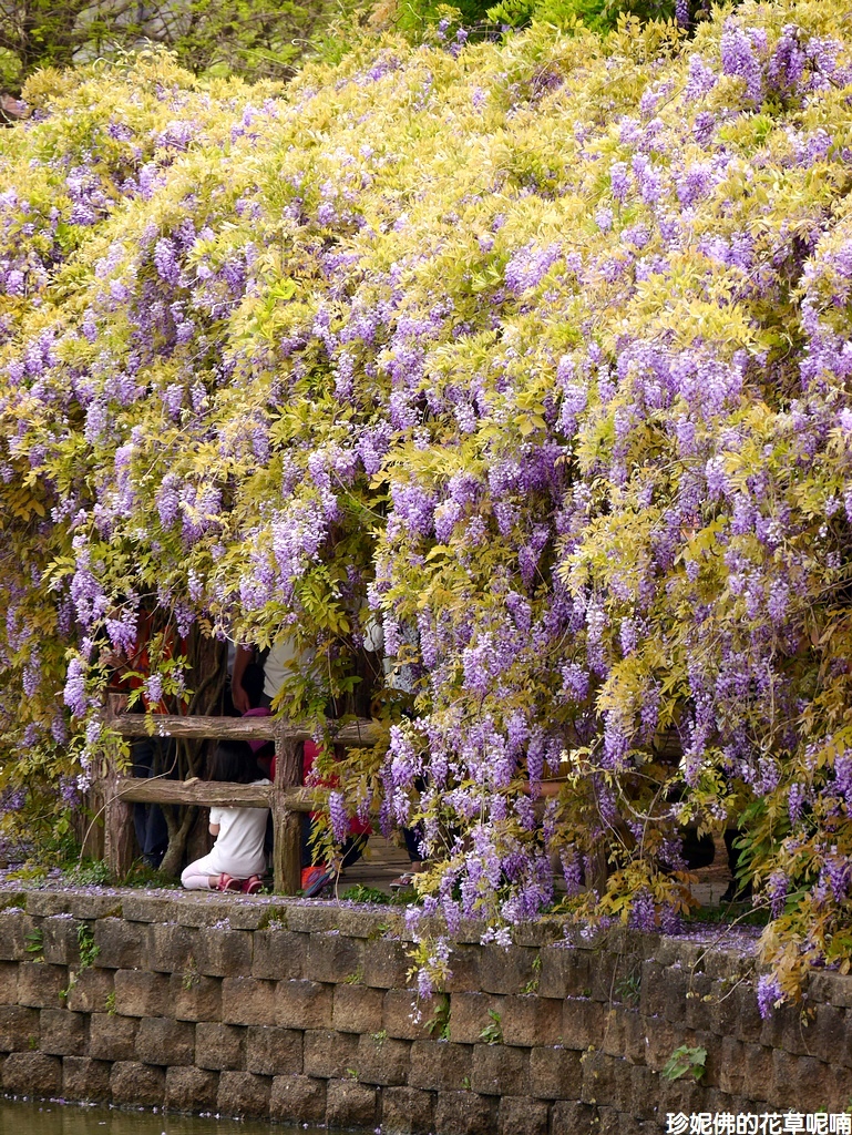 紫藤種在湖畔,真的是遠遠就能看到花架下的人潮