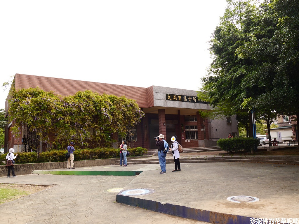 大湖里集會所的牆上也種了一片紫藤,旁邊還有兩棵流蘇