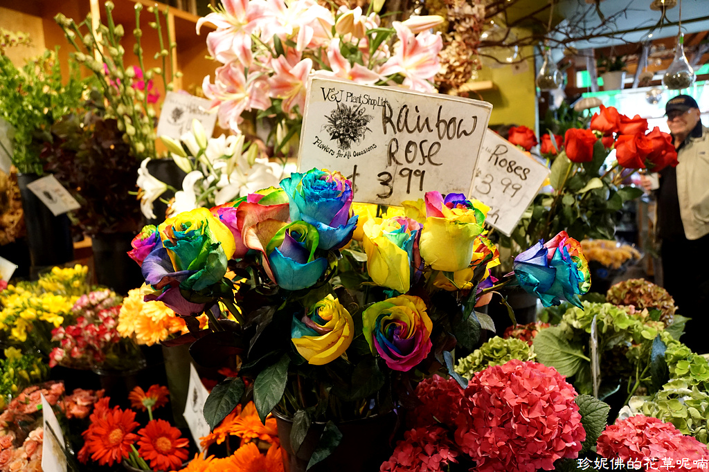 花卉攤的彩虹玫瑰相當漂亮