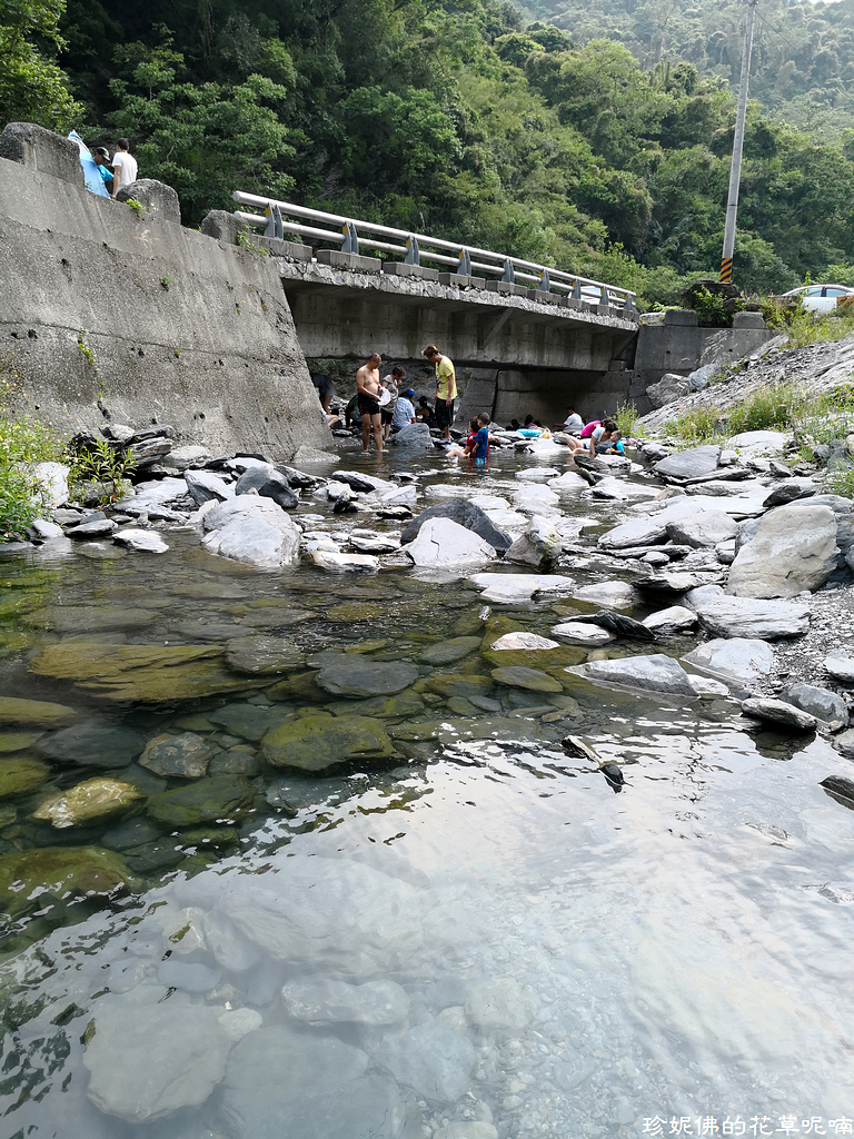 水質清澈且不深,水裡有小魚,很多人帶孩子來這裡玩水