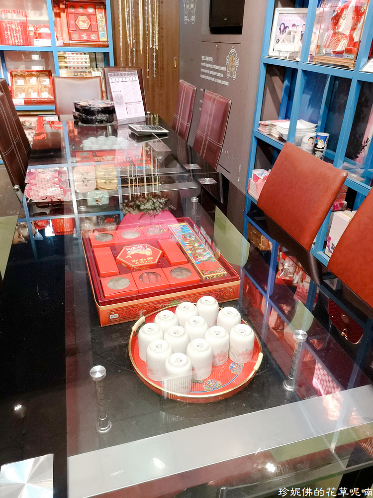 喜餅接待區陳列了很多曾經發售過的禮盒
