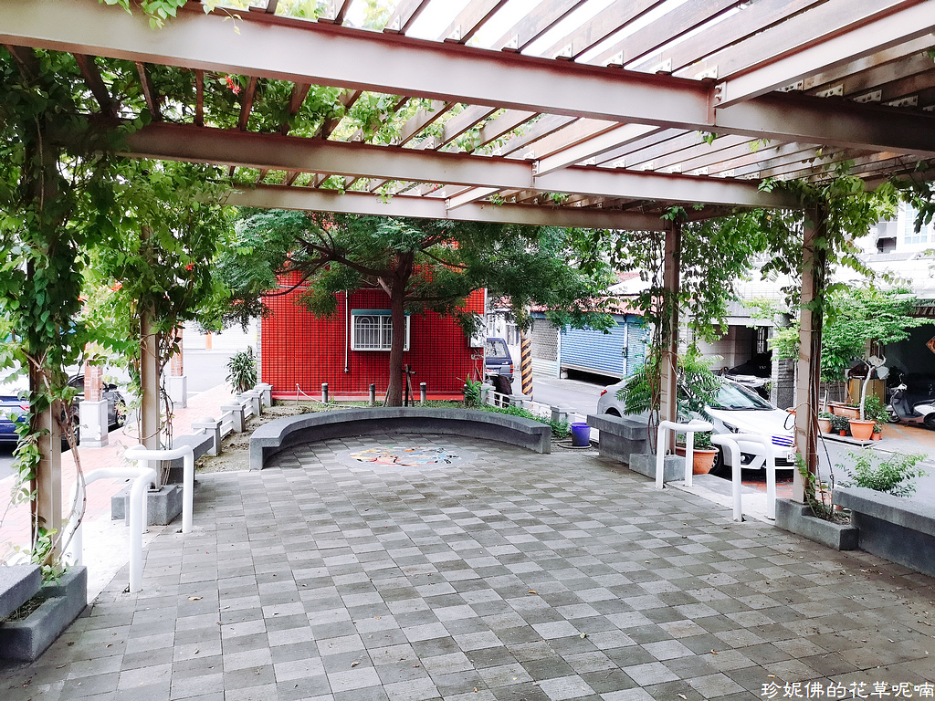 小廣場上方棚架種的是使君子花,上次來開得很漂亮