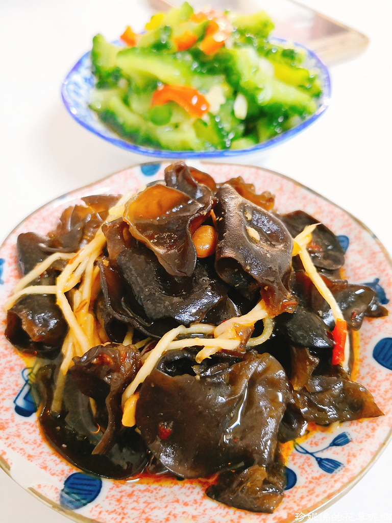 涼拌木耳微辣微酸也不錯吃,中午點的小菜味道都很可以