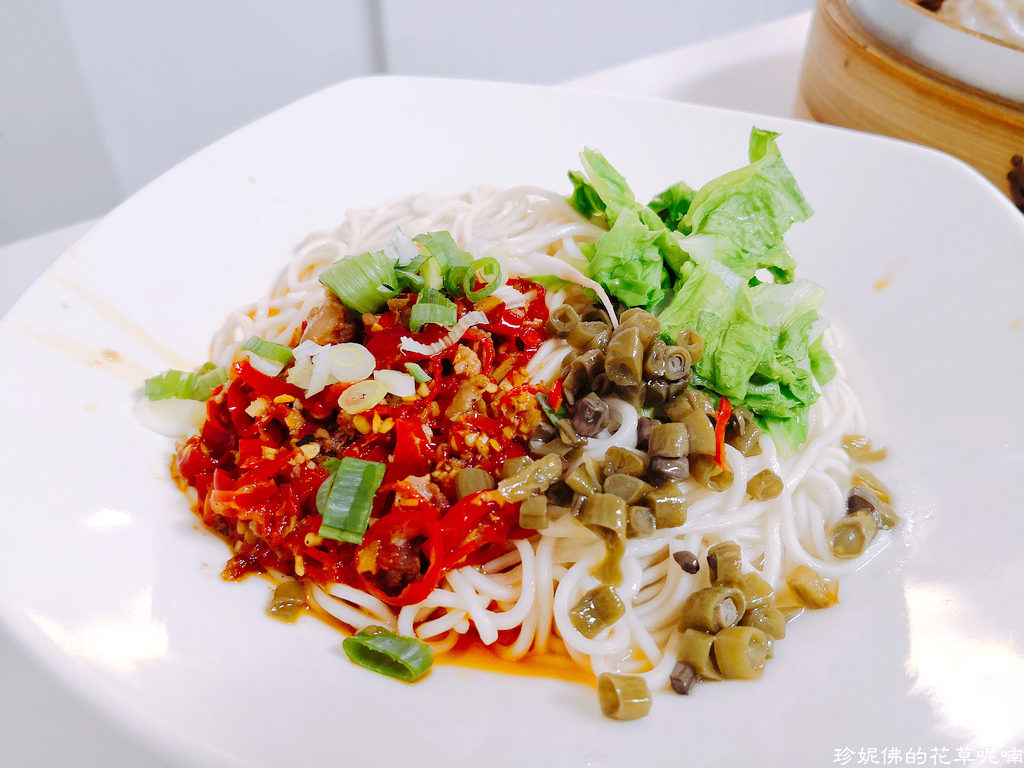 同事超愛吃辣點了一碗酸豆麵,麵裡很多辣椒及酸豆,覺得這辣度應該頗為驚人
