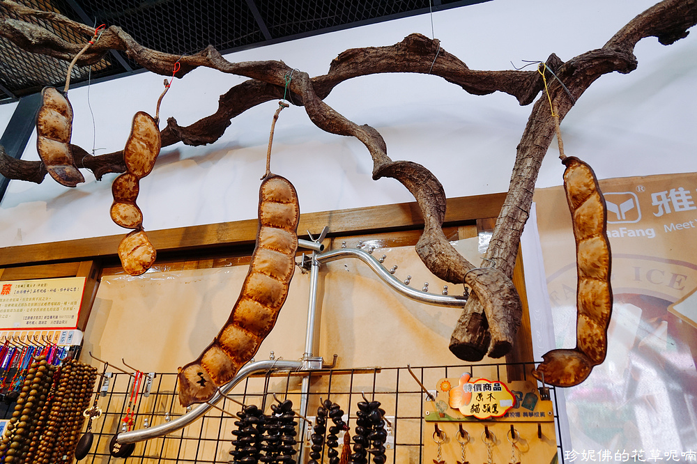現場還掛了鴨腱藤的果莢,和下方的串珠比起來非常巨大