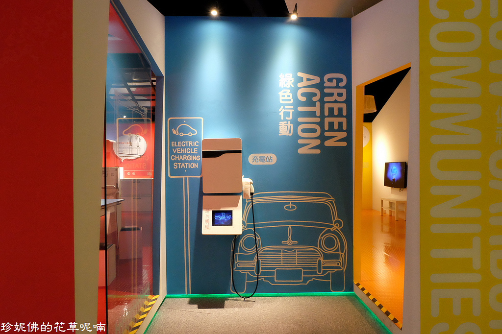 低碳樂活與互動遊戲區電力補給站、藝術空間畫廊等四個展區