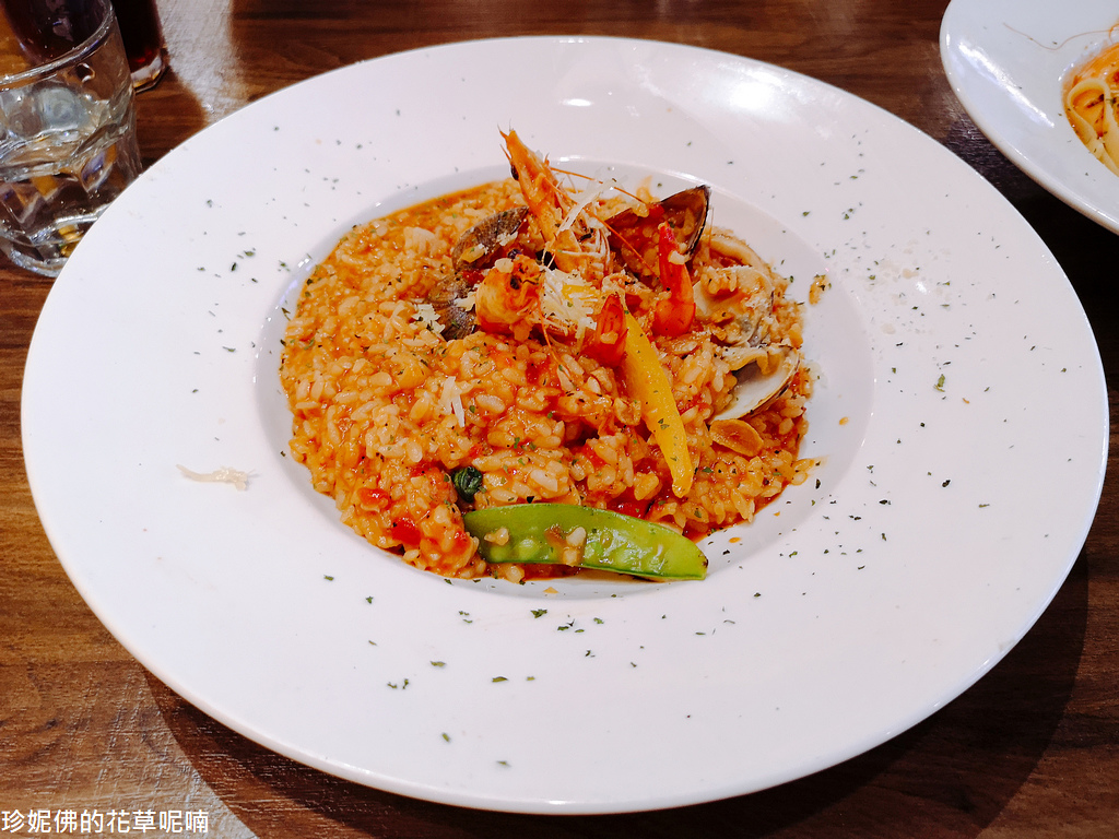 紅番茄海鮮燉飯235元,飯跟麵都可以加30元增量