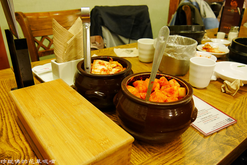 ▲桌上有兩盅辣蘿蔔跟泡菜