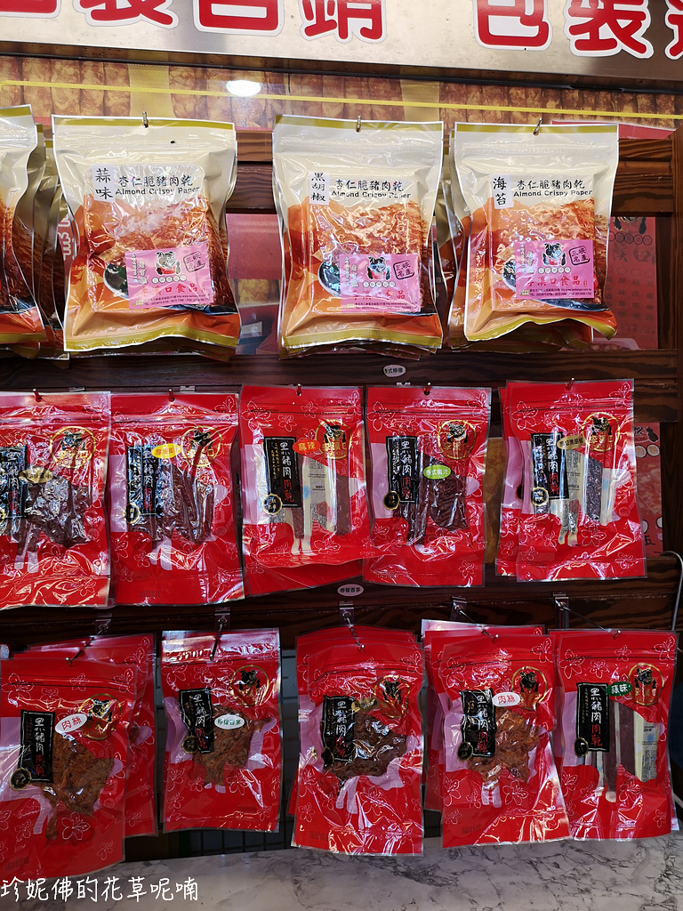 ▲蒜味、黑胡椒、海苔杏仁脆豬肉乾,也有肉條、肉絲系列商品