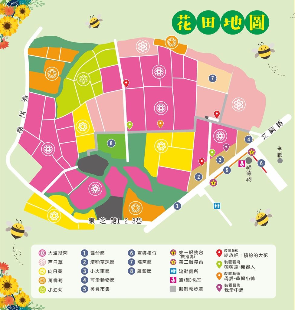 花海設有「綻放吧!繽紛的大花」、「萌萌達~機器人」