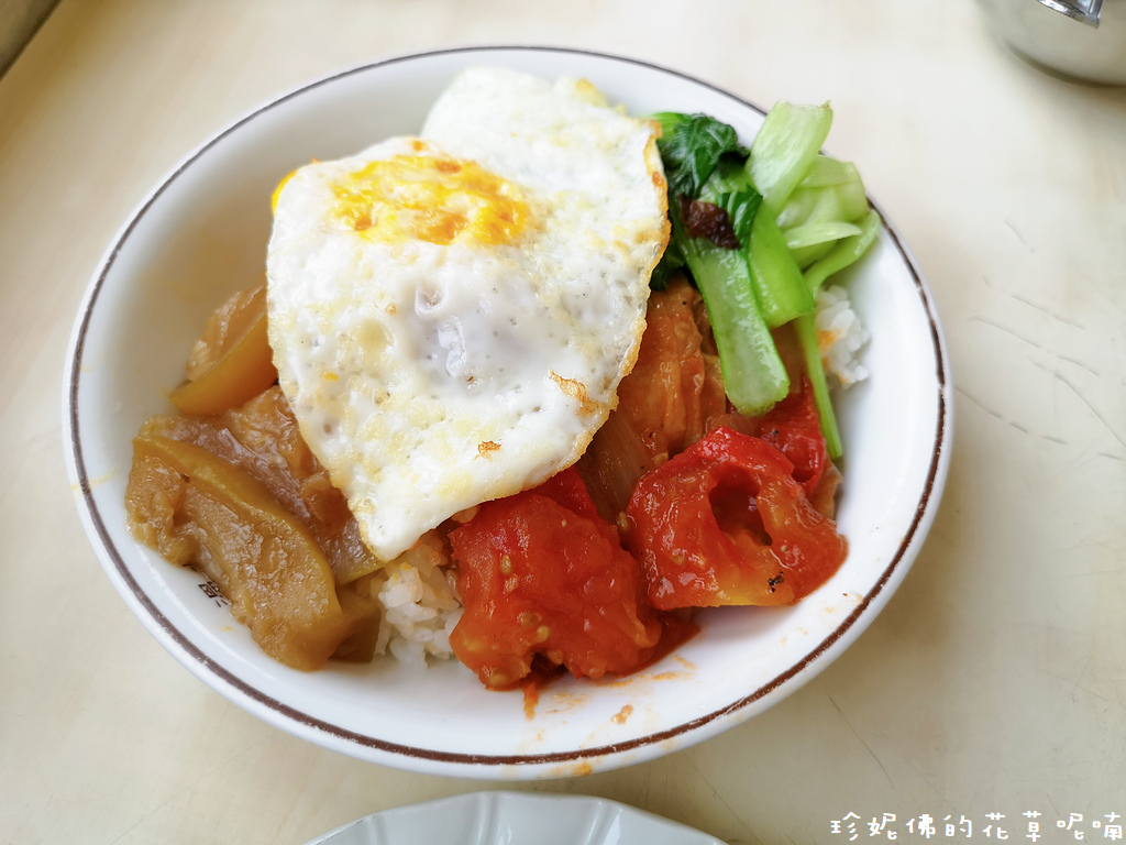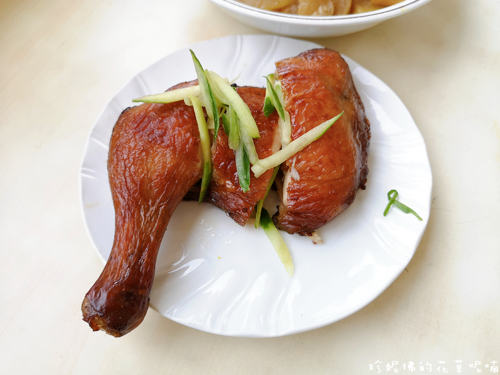 ▲雞腿飯的菜飯用小碗公盛裝,烤雞腿有入味還不錯吃