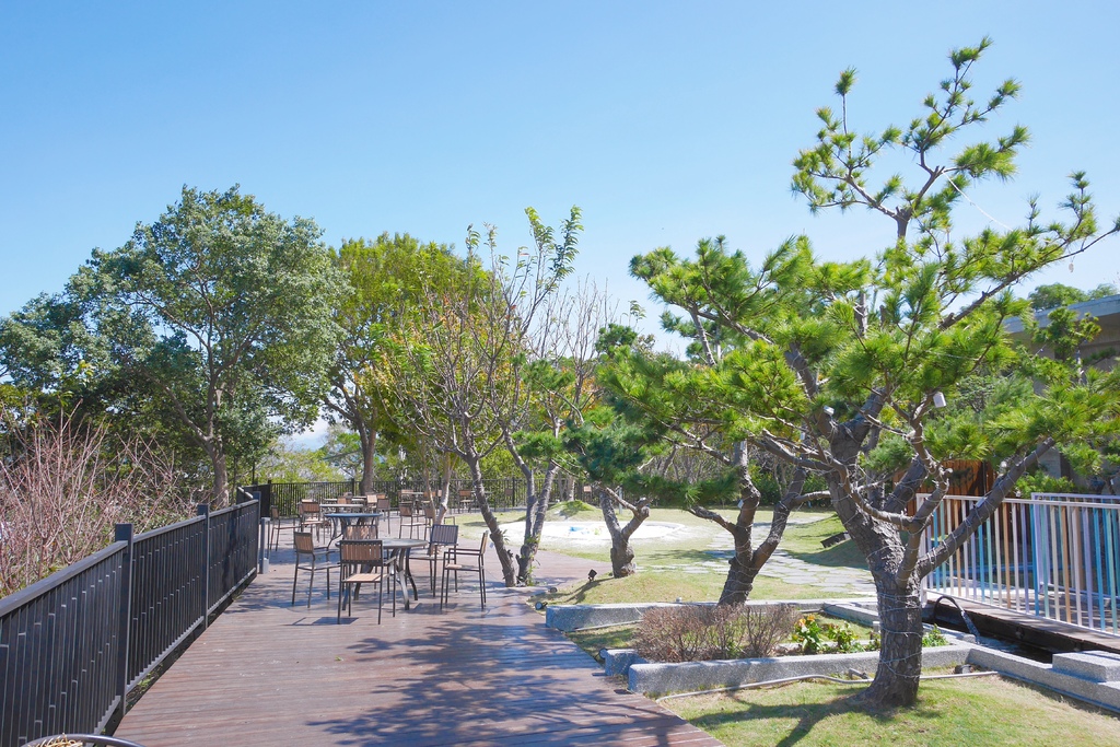 沙坑、梅花鹿跟錦鯉在一樓餐廳後面