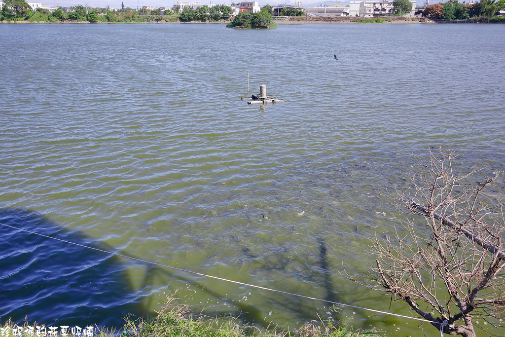 右下角都是魚,黑黑一群,浮出水面好像要吃飼料一樣