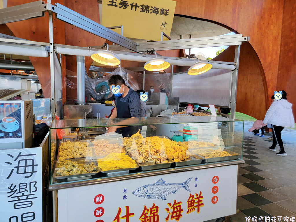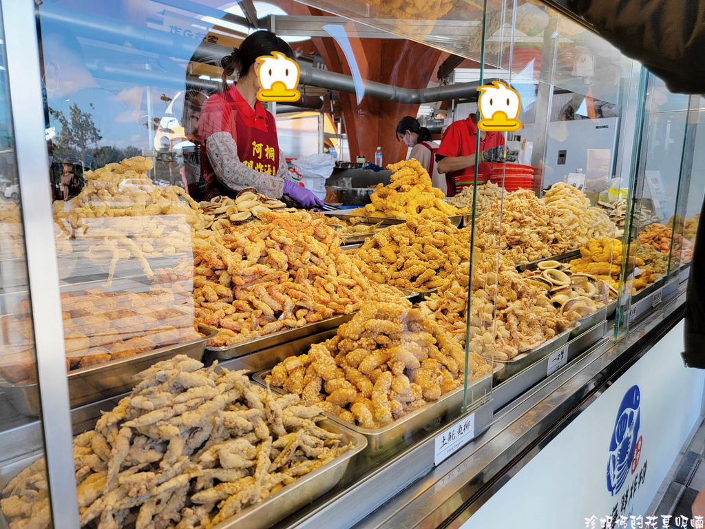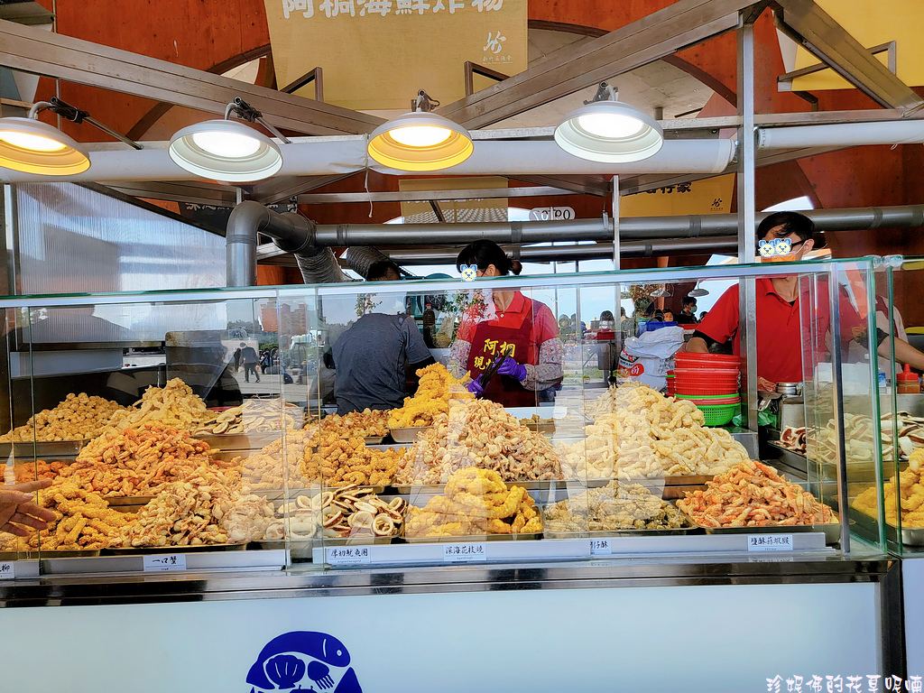 各種油炸海鮮堆的跟小山一樣實在很醒目也很誘人,想說買一些來吃看看