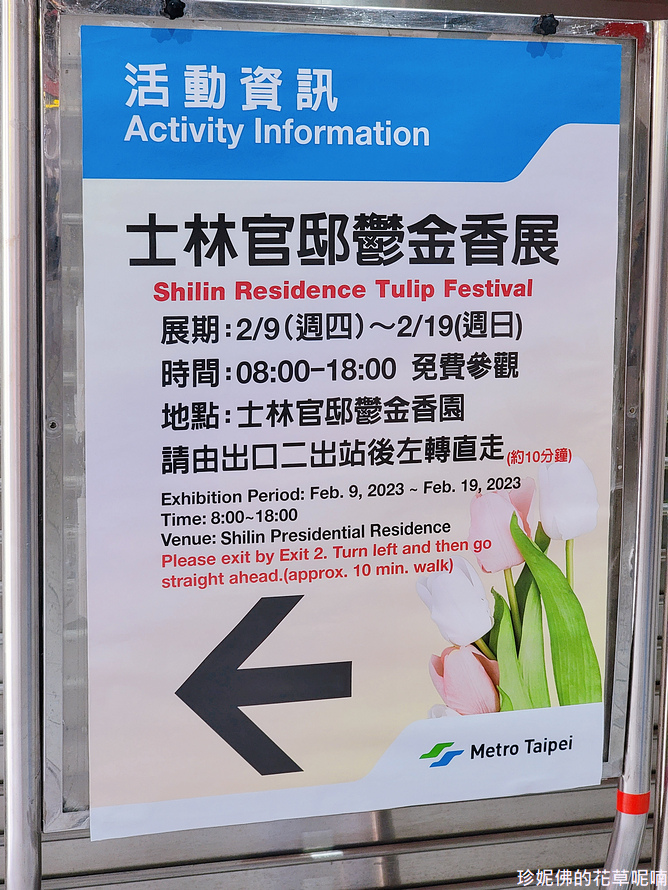 鬱金香展期不長只到2/19,搭乘捷運至士林站二號出口