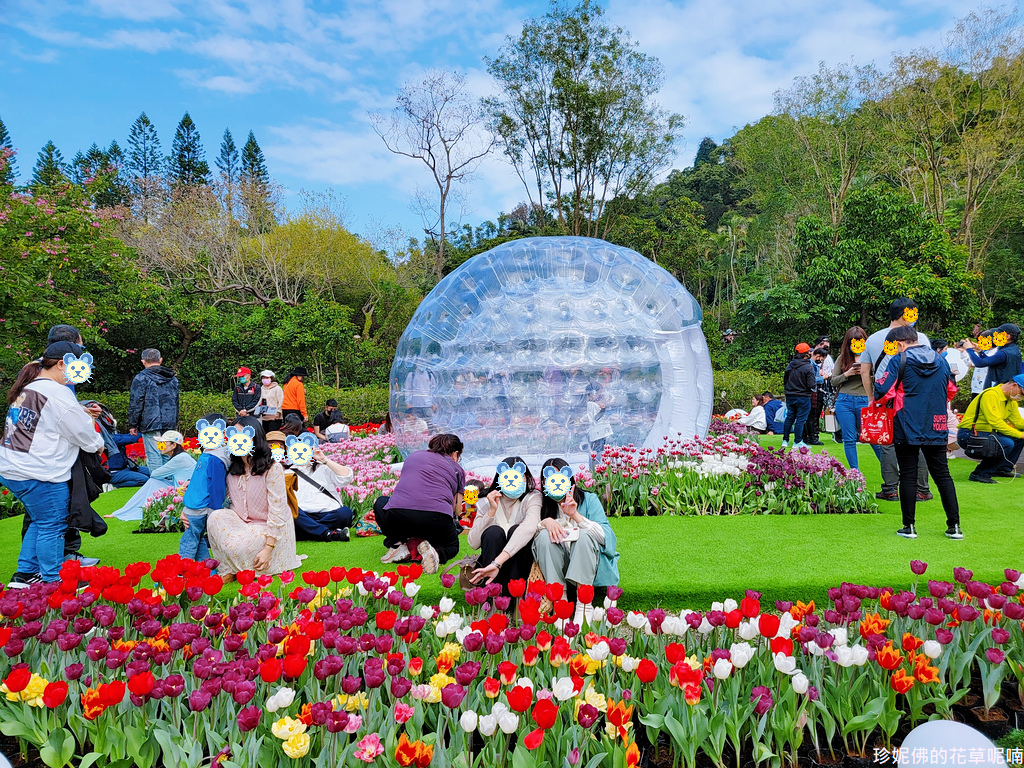 在鬱金香花海裡遇上夢幻泡泡,富有情調的彩色泡泡