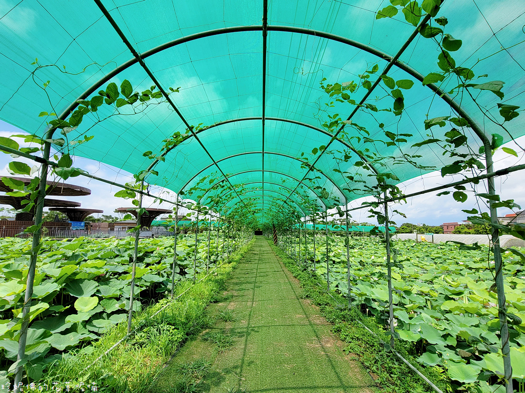 ▲瓜果廊道,棚子裡有絲瓜及其他瓜果