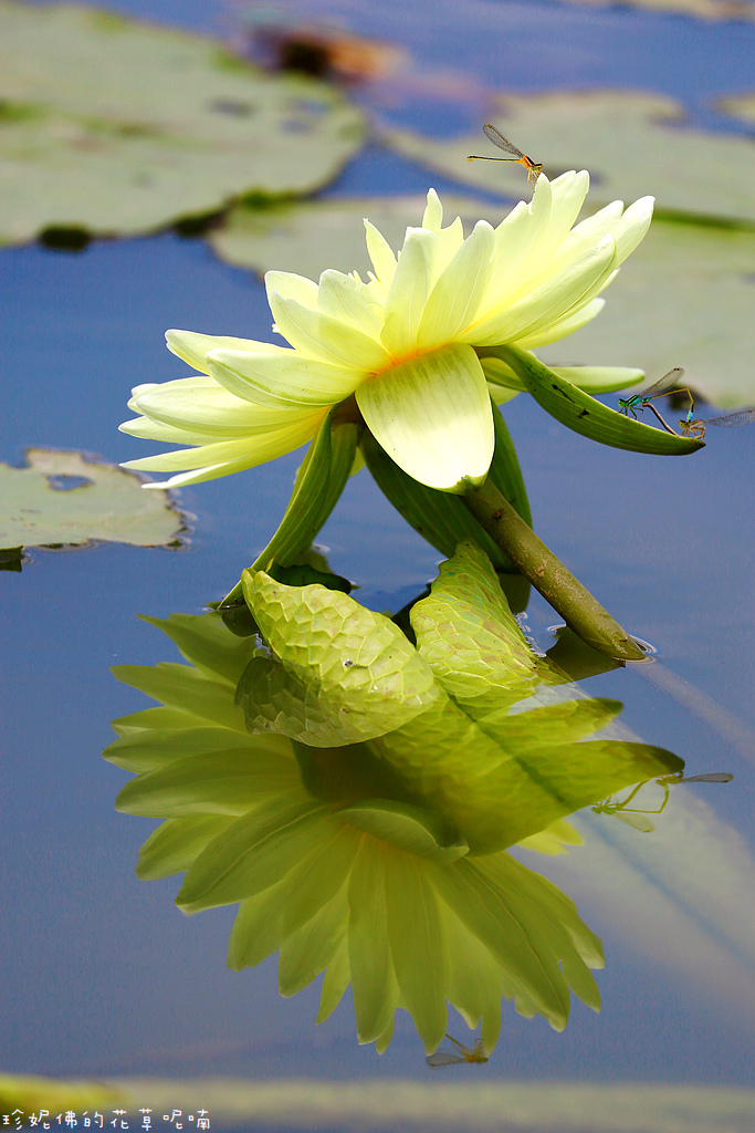 ▲蓮花上常見蜻蜓、豆娘及蜜蜂採蜜