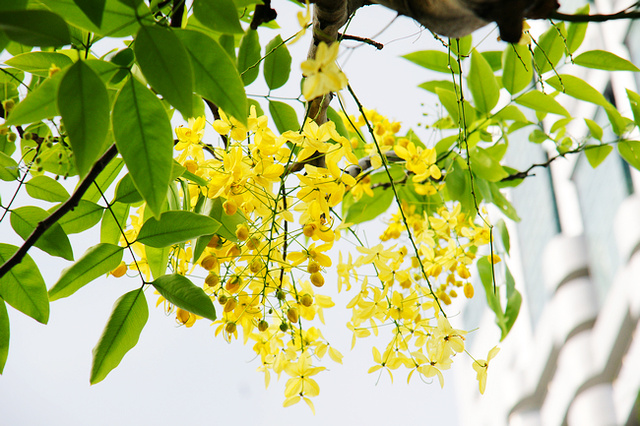 每年的5-7月是阿勃勒下黃金雨的美麗時刻,一串串像極了金色葡萄般的花序在