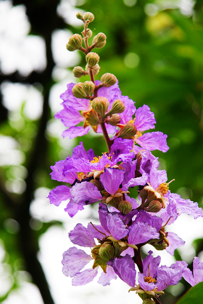 板橋縣民大道上有一些行道樹就是大花紫薇,現在花開得正美正艷,整棵樹都被這紫色浪漫