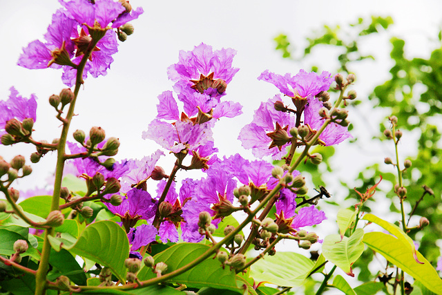 ▲大花紫薇和阿勃勒一樣,常常被用來庭園栽培或是當行道樹,開花季節為5-8月,
