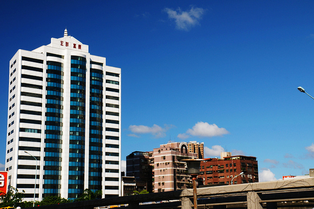 畫面的左下邊有好多看似殘破的紅瓦屋,和現代化的高樓大廈成了強烈的對比。