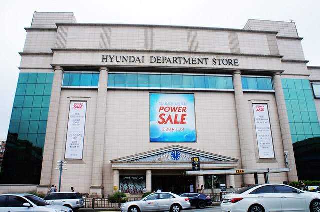 從狎鷗亭5號出口一出來右手邊就是現代百貨公司,再往前走約1~2分鐘