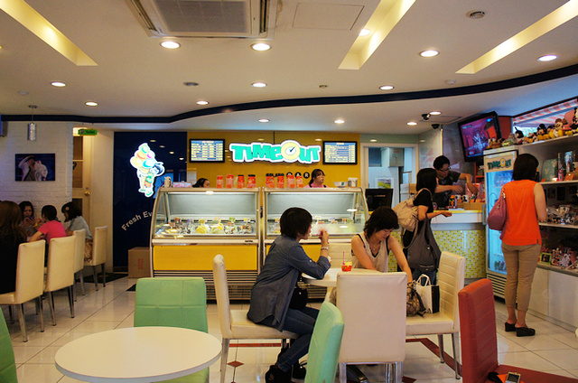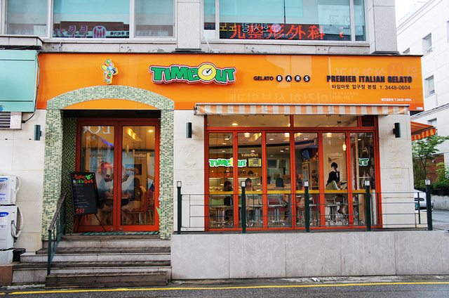 左手邊第一條巷子左轉就是人氣韓星朴有天家的Time Out 冰淇淋店了