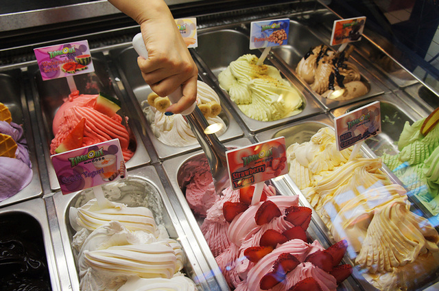 每一種冰淇淋的口味上面都有英文標示的牌子,所以不用擔心點餐的問題 ![]()