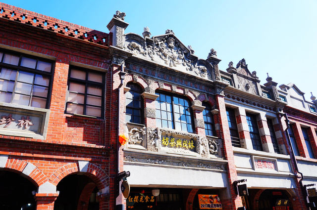 一整排的相連的紅磚廊道旁都是當地的商家,這間甘蔗園的大門竟然還保存著當時的樣子