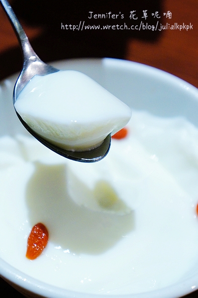 杏仁豆腐,味道相當的天然,口感超級細緻滑嫩,還加了枸杞很養生