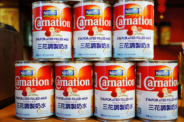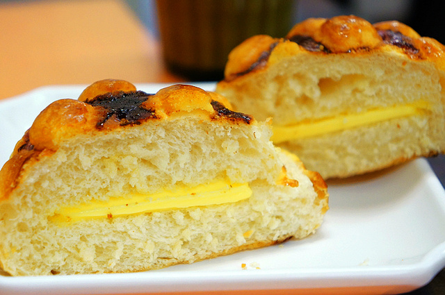 還抹了花生醬,吃起來很香,切開後煉乳會融到吐司裡,一起吃口感還不錯呢!