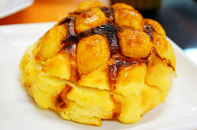 波蘿麵包烤的酥酥的,趁熱搭著裡面的冰過的奶油一起吃口感很棒呢!