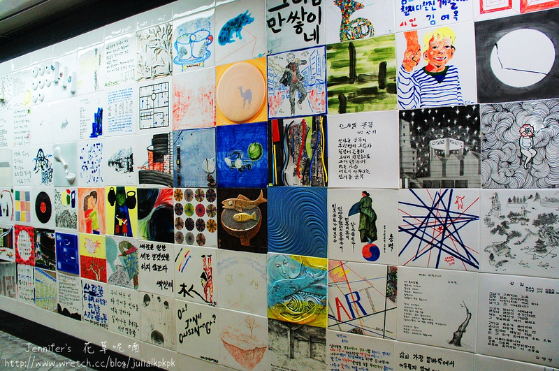 搭地鐵3線號到安國站6號出口就可以到仁寺洞囉!在地鐵裡面就可以看到一整面可愛的壁畫