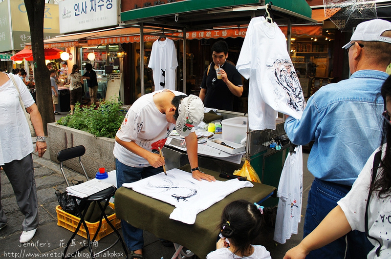 仁寺洞不愧是韓國傳統文化的大本營,連T恤都可以現場製作,而且老闆你拿的是毛筆吧!