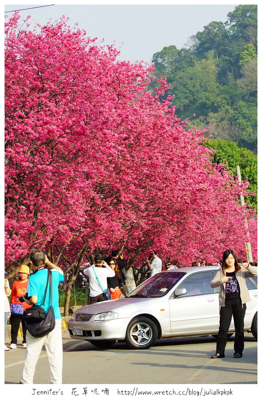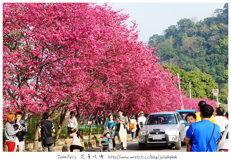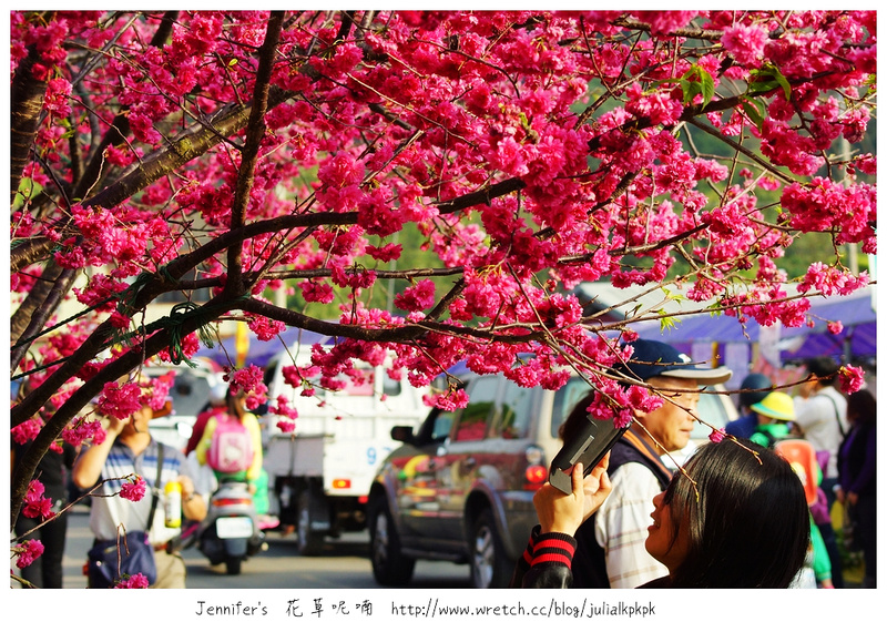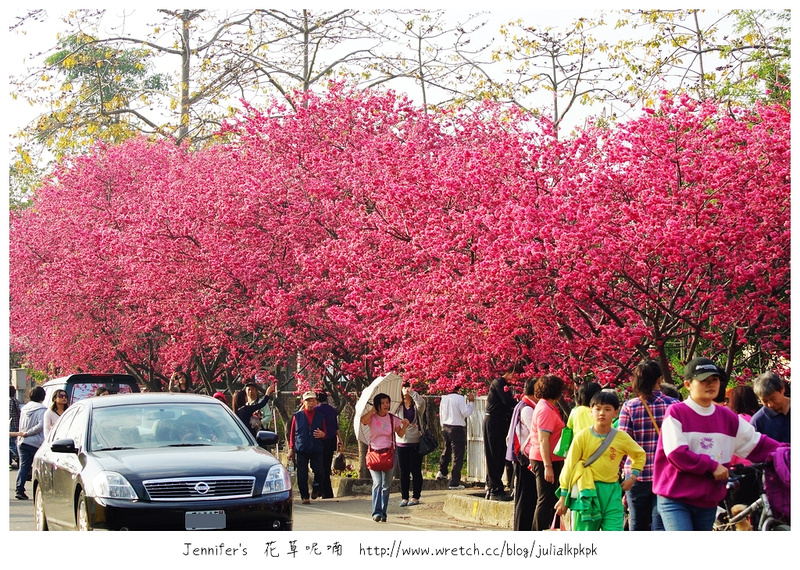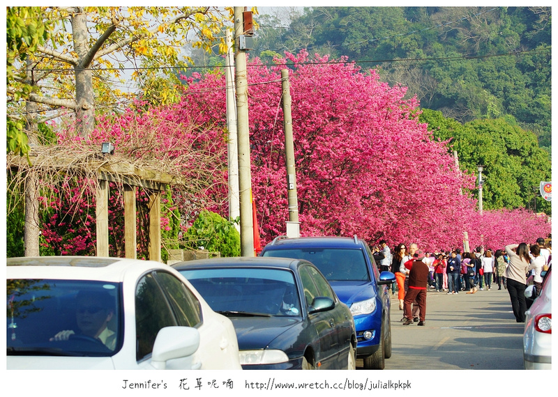 今年盛開又適逢過年連假九天期間,賞花的人潮灌爆了這條小小的安眉路,也擠爆了泰安派出所
