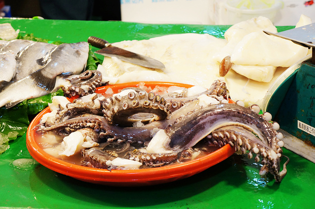 走著走著快到出口的時候突然發現眼前這堆得像山的現炸海產