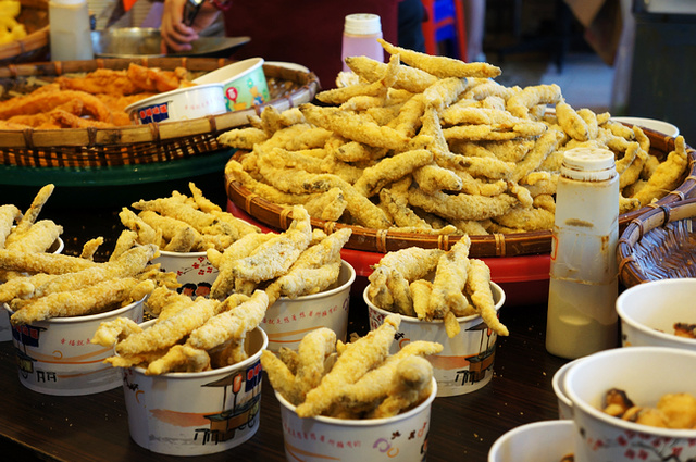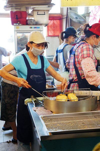 第一次來永安漁港,看到一攤攤新鮮漁獲還有堆得像山的炸物及乾貨,讓人看得眼花撩亂